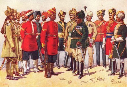On a vu que le pays est gouverné sur le terrain par le vice-roi. Il a sur ses territoires des troupes Britanniques ‘’commissionnées’’ par la Reine Victoria, des troupes commissionnées par lui, vice-roi, et des troupes des princes. Ces deux dernières sont à recrutement local pour la troupe et menées par des officiers britanniques et/ou locaux.