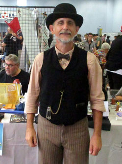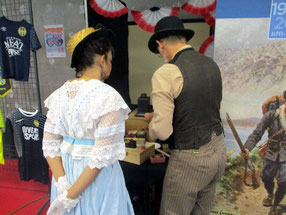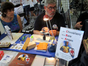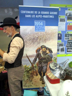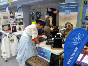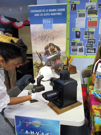 Évidemment, je ne vais pas passer à côté d'un stand que j'affecte spécialement, celui de l'Association de l'Histoire Vivante et d'Archéologie expérimentale-Histoire, association gérée par Christophe Fine et Alain Fine.Le thème de cette année est la présentation, l'animation d'un cinéma avant 1900.