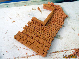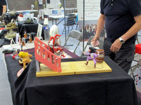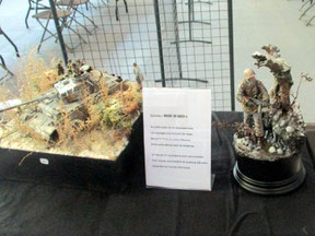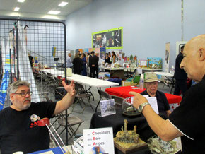 Bruno se montre bien actif sur le stand..., entre réalisation de murs, entre montage de figurine et peinture…