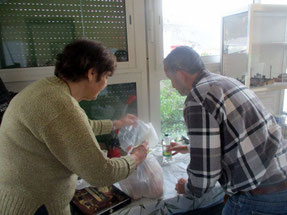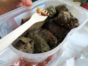 Après une bonne bolée de cidre.....même, deux, nous apprécions les mets apportés par Valentin et Paul, et plus spécialement les feuilles de vigne farcies de maman Valentin.....délicieuses, une fois réchauffées.
