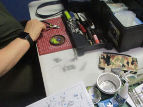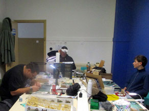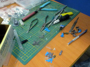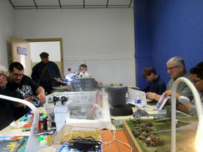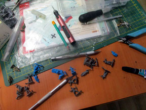 Warren prépare sa nouvelle saynète, petit décor approprié et figurines…