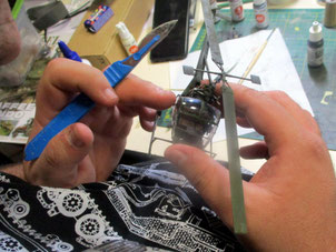 Quant à Marcus.....très actif, aujourd'hui. Ayant oublié son dio en cours, pourquoi pas une nouvelle maquette ?Bin voyons, mon bon monsieur !!!