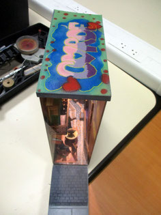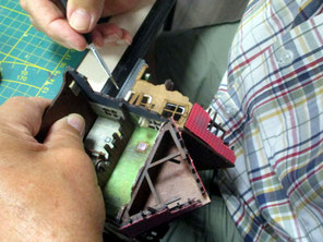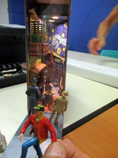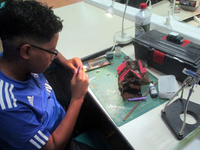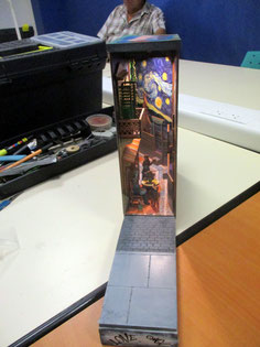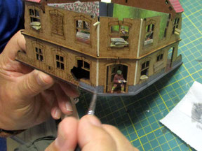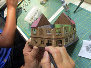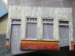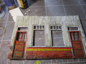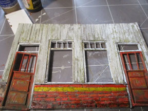 Après la réalisation de quatre véhicules, j'ai commencé la partie décor, avec, en fond, une station service qui est ou sera, plutôt en piteux état.... Juste un petit aperçu de l'avancée des travaux.....