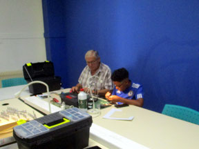 Et c'est parti pour un ravalement de façade !!!, pas de manipulation de truelle, pour Pierre, uniquement, un pinceau !!!