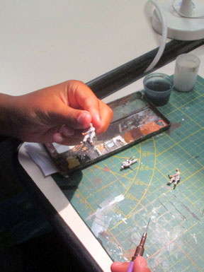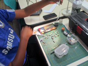 En attendant son co-équipier, Pierre, Warren, pinceau en main, progresse sur la peinture de ses armées…