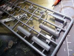 Et début du montage d'une des pompes à essence de chez Mini Art. Pas facile, ce kit… (la peinture fera le reste !!!)