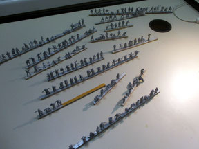 Henri, une approche de l'exode de 40, ou pas… Les figurines sont rassemblées et fixées par catégorie, pour des séries de teintes de base, communes à chaque catégorie… Il n'y a plus qu'à......mais quand…
